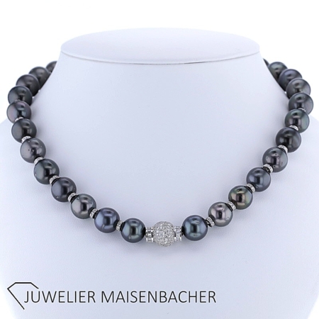 Außergewöhnliches Collier Tahiti-Perlen mit Brillant Kugelschließe *Unikat*