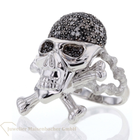 Ring Pirat 750 Weißgold Totenkopf mit Brillanten schwarz