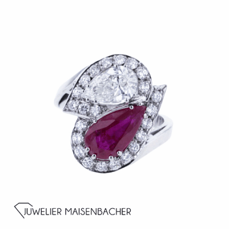 Handgearbeiteter Diamant und Rubin Ring in 950er Platin