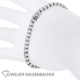 Armreif mit 179 Diamanten im Brillantschliff in 750/- Weißgold Farbe: Wesselton, weiß (H) – getöntes weiß / Crystal (K) Reinheit: VS – P1 174 natürliche Diamanten im Brillantschliff á 0,03 ct insgesamt ca. 5,22 ct 4 natürliche Diamanten im Brillantschliff (ca. 0,22 ct, 0,25 ct, 0,28 ct, 0,29 ct) insgesamt ca. 1,04 ct 1 natürlicher Diamant im Brillantschliff ca. 0,77 ct insgesamt ca. 7,03 ct Innendurchmesser: L: ca. 50,4 mm – B: ca. 60,4 mm Breite Armreif oben: ca. 12,3 mm Breite Armreif unten: ca. 5,8 mm Stärke Armreif: ca. 1,9 mm – 4,4 mm Kastenschloss mit Sicherheitsacht Bruttogesamtgewicht: 43,6 gr.