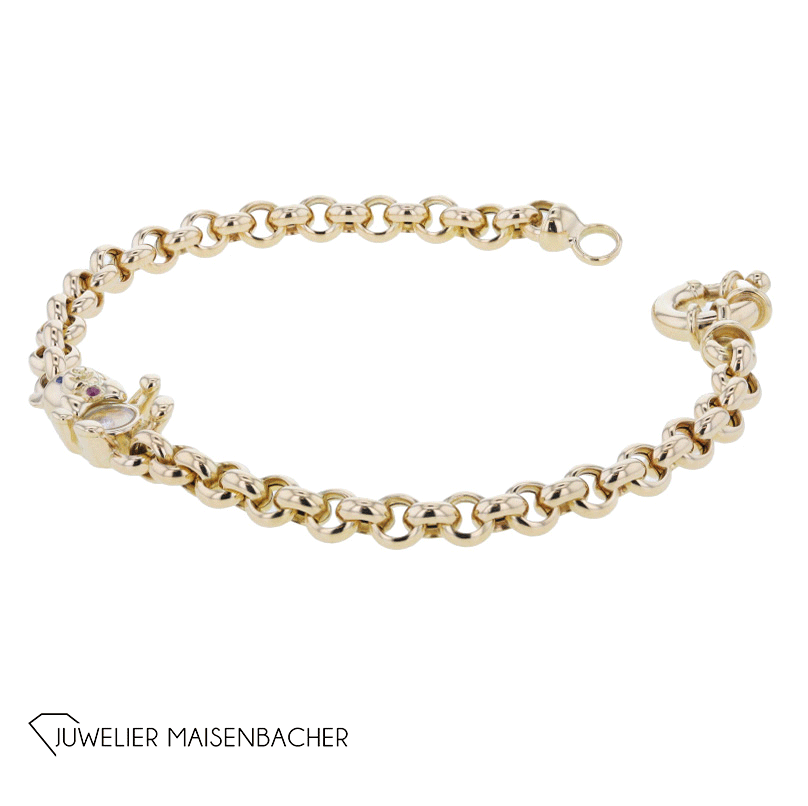 Die gleichmäßig gearbeiteten Erbsenkettenglieder sorgen für eine harmonische Optik und eine hohe Stabilität. Sie führen elegant zu dem besonderen Highlight des Armbands: einem detailreich gestalteten Bärenanhänger. Dieses charmante Element verleiht dem Schmuckstück eine individuelle Note und hebt es deutlich von klassischen Armbändern ab.