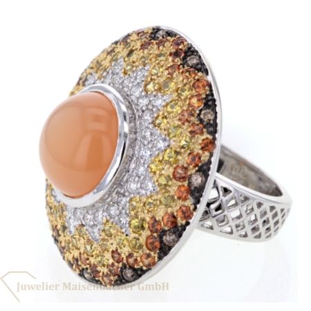 Statementring/Ring mit farbigen Diamanten und Mondstein Gold